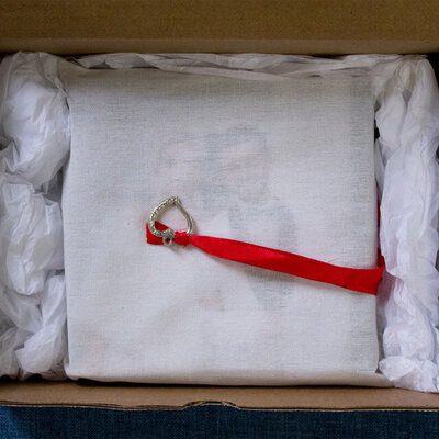 All albums come in a special muslin bag with a ribbon drawstring and silver charm.
