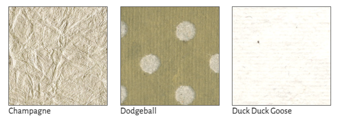 Choose from fabrics in a mix of classic textures from silky Asahi to crisp Buckram. Foil imprinting (debossing) is not available on fabric.