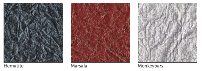 These natural leathers have touchable surfaces that may vary slightly from hide to hide. Imprinting (debossing) is not available on textured leathers.