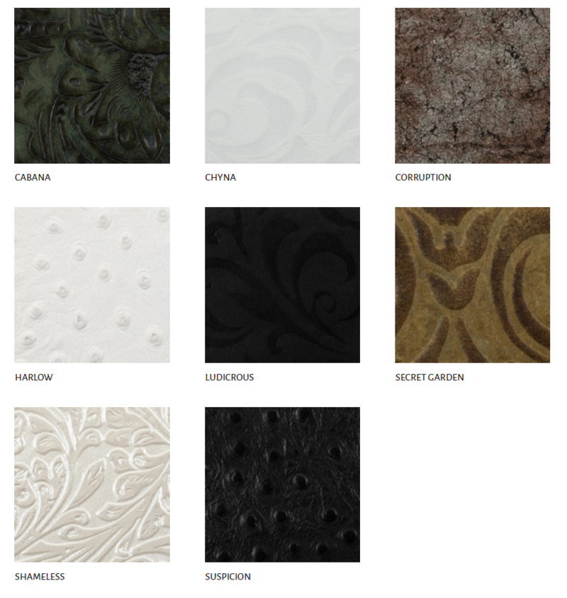We offer a wide selection of smooth, genuine leathers in a range of colors and classic, metal, and distressed textures. The appearance of natural leather my vary slightly from hide to hide. Foil imprinting (debossing) is available on all classic leathers.